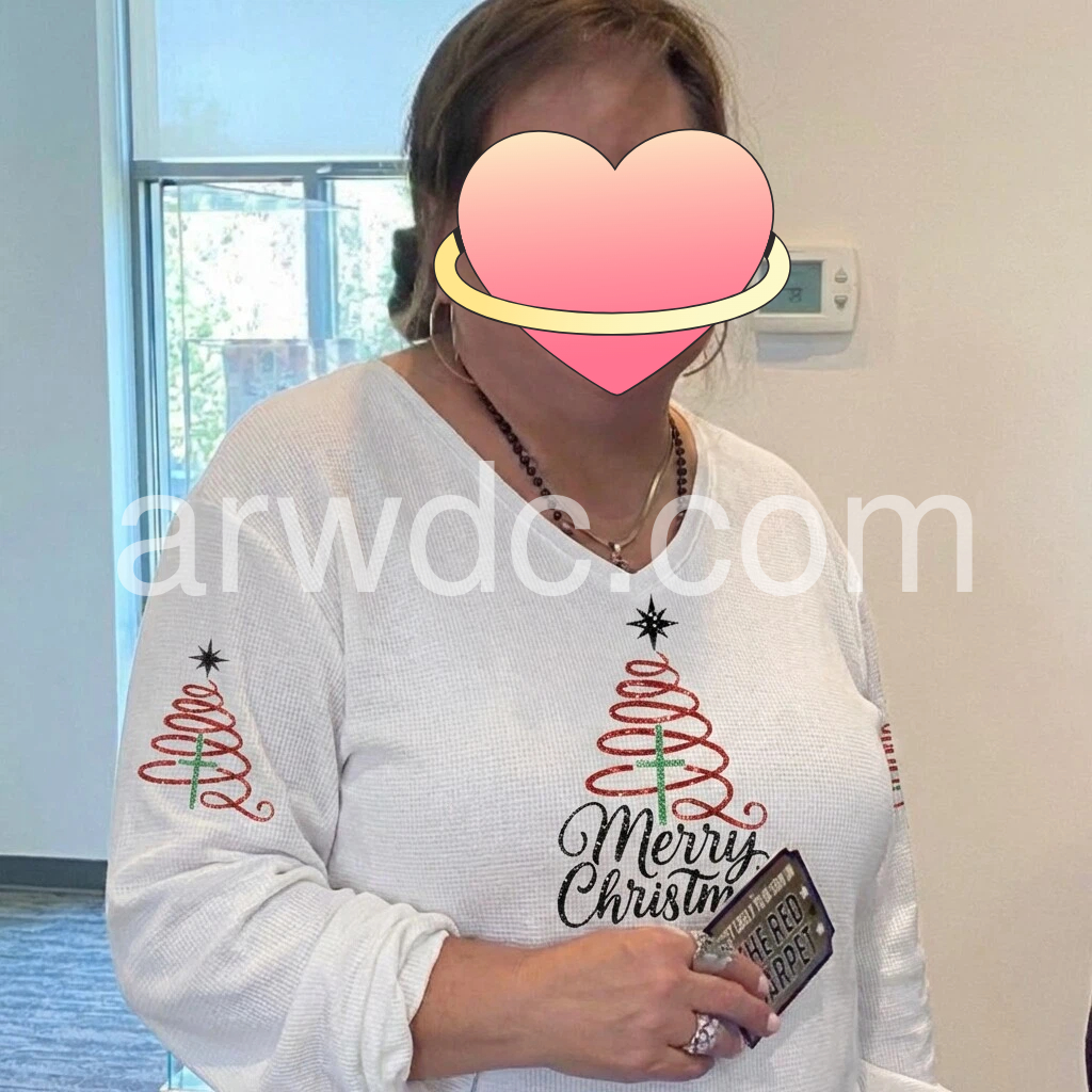 I love this Christmas sweatshirt! The white fabric feels soft and comfortable, and the “Merry Christmas” design with the trees looks festive and well made. The V-neck is flattering and the fit is just right—not stiff or scratchy. It’s perfect for the holiday season and matches the photos exactly. Great quality for the price.