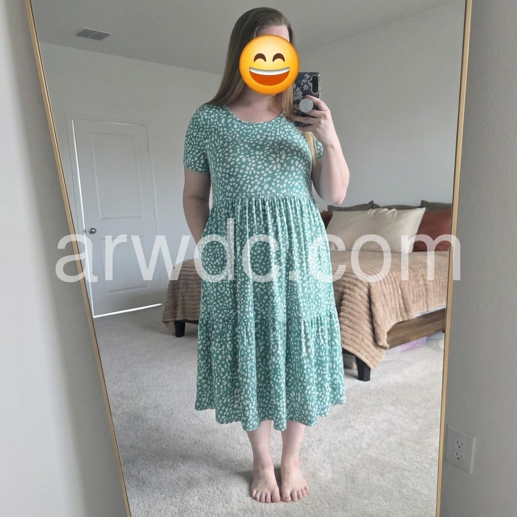 We're quite happy with this summer midi dress! It’s casual, but it can easily be dressed up for a nicer look. I ordered a medium and it fits my sister perfectly. She is featured in my photo. She wears medium tops, and this couldn't fit any better! For reference, she is 5' 1\". It’s cute, comfy, and comes in lots of design options, making it a versatile addition to a summer wardrobe.