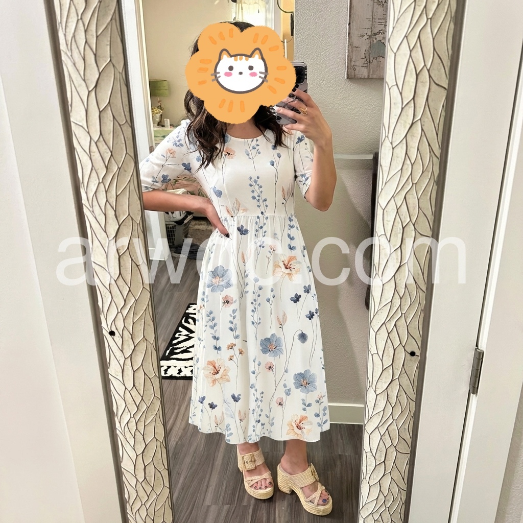 I crafted this dress to bring soft, romantic charm to your wardrobe. The watercolor floral print feels fresh and modern, avoiding overly sweet designs that date quickly.