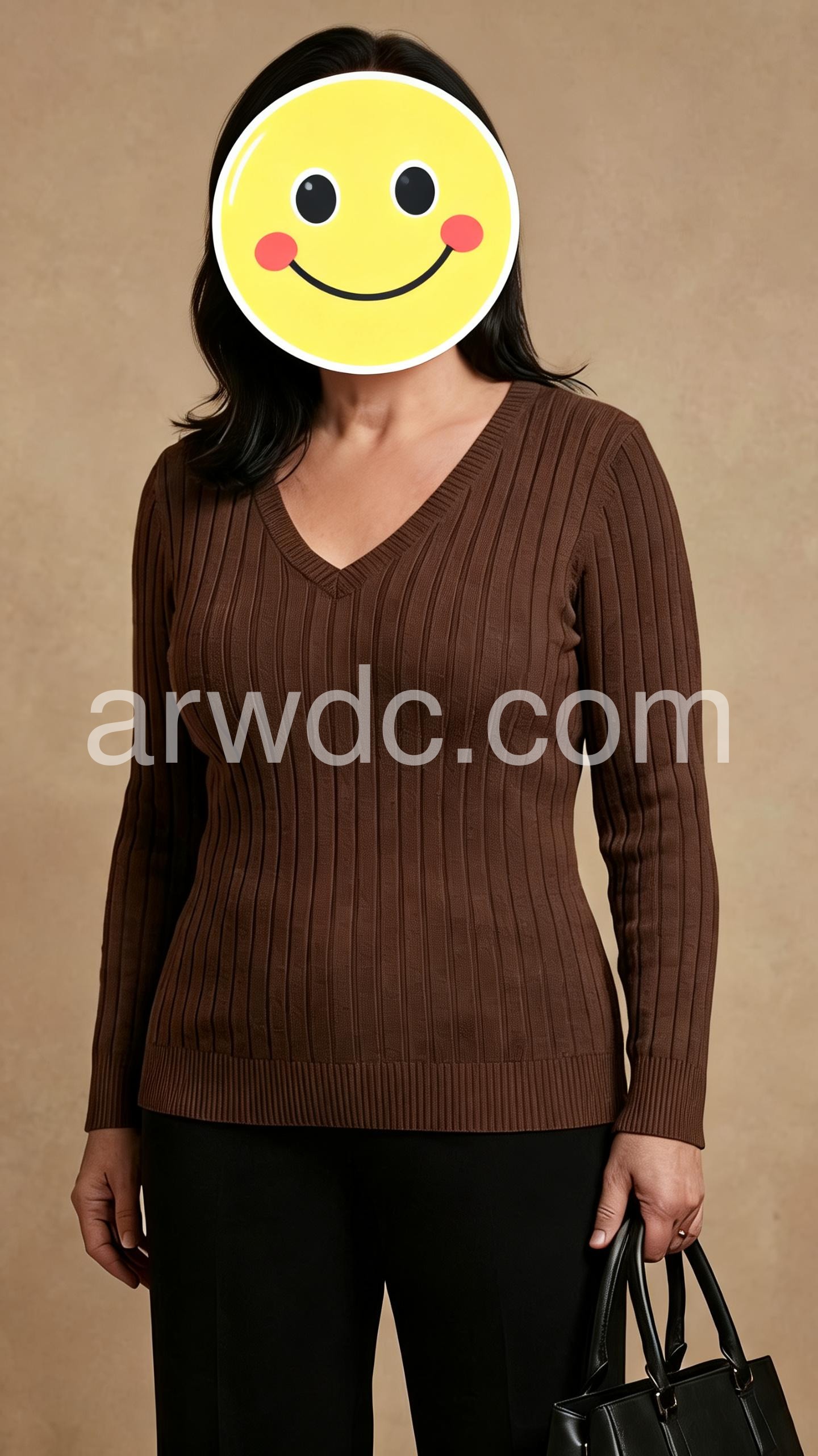This is such a nice sweater. The ribbed texture is high quality and the fit is very flattering. It’s comfortable for everyday wear and perfect for cooler weather. The color is rich and looks great with everything—just like in the listing pictures. I’m very happy with my purchase.