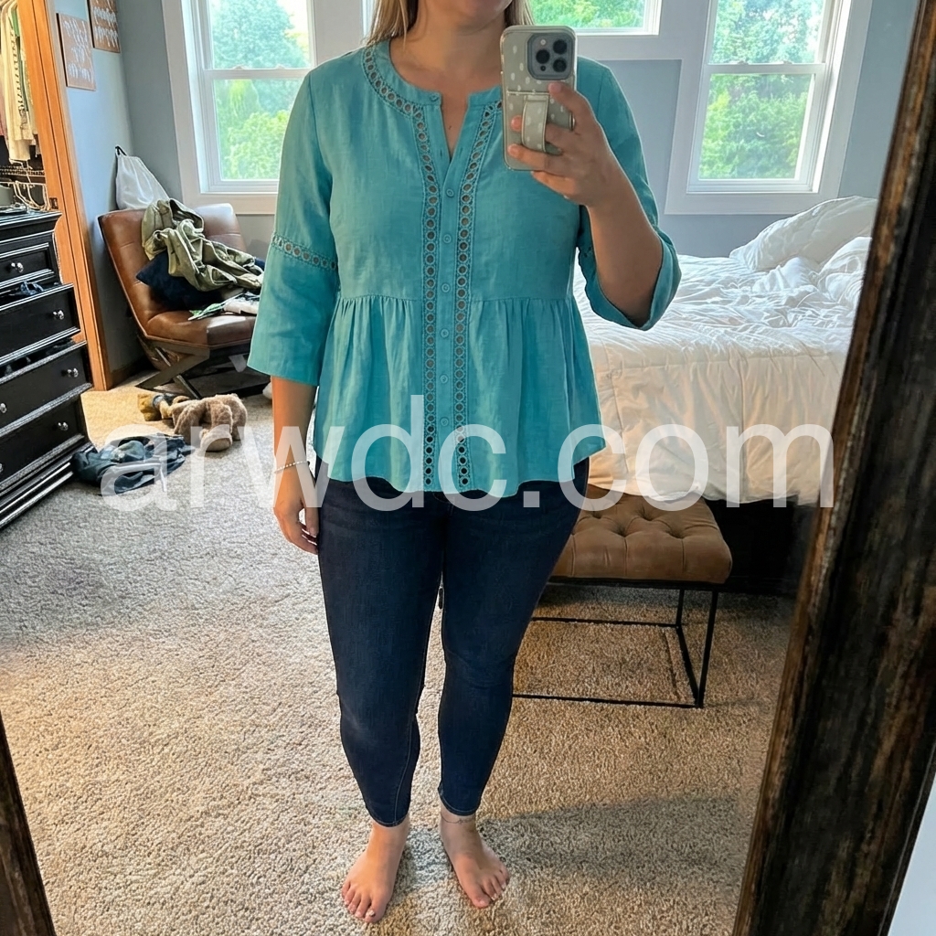 As a curvy woman, I always look for tops that are forgiving around the midsection. This babydoll design hides my tummy perfectly without looking like a maternity shirt. Very comfortable and true to size!