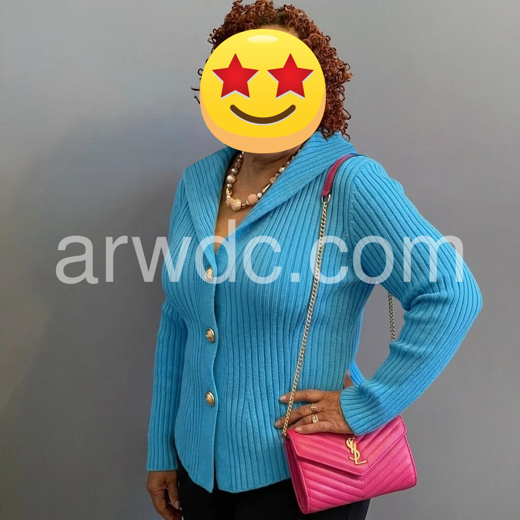 I was hesitant about the color but it’s even better in person! The turquoise hue is vibrant and beautiful, and the ribbed texture is so flattering. The buttons add a luxurious touch, and the wrap-style neckline is so chic. It’s true to size and fits perfectly, not too tight or restrictive. The fabric is warm but not bulky, great for layering or wearing alone. I’m obsessed with this piece!