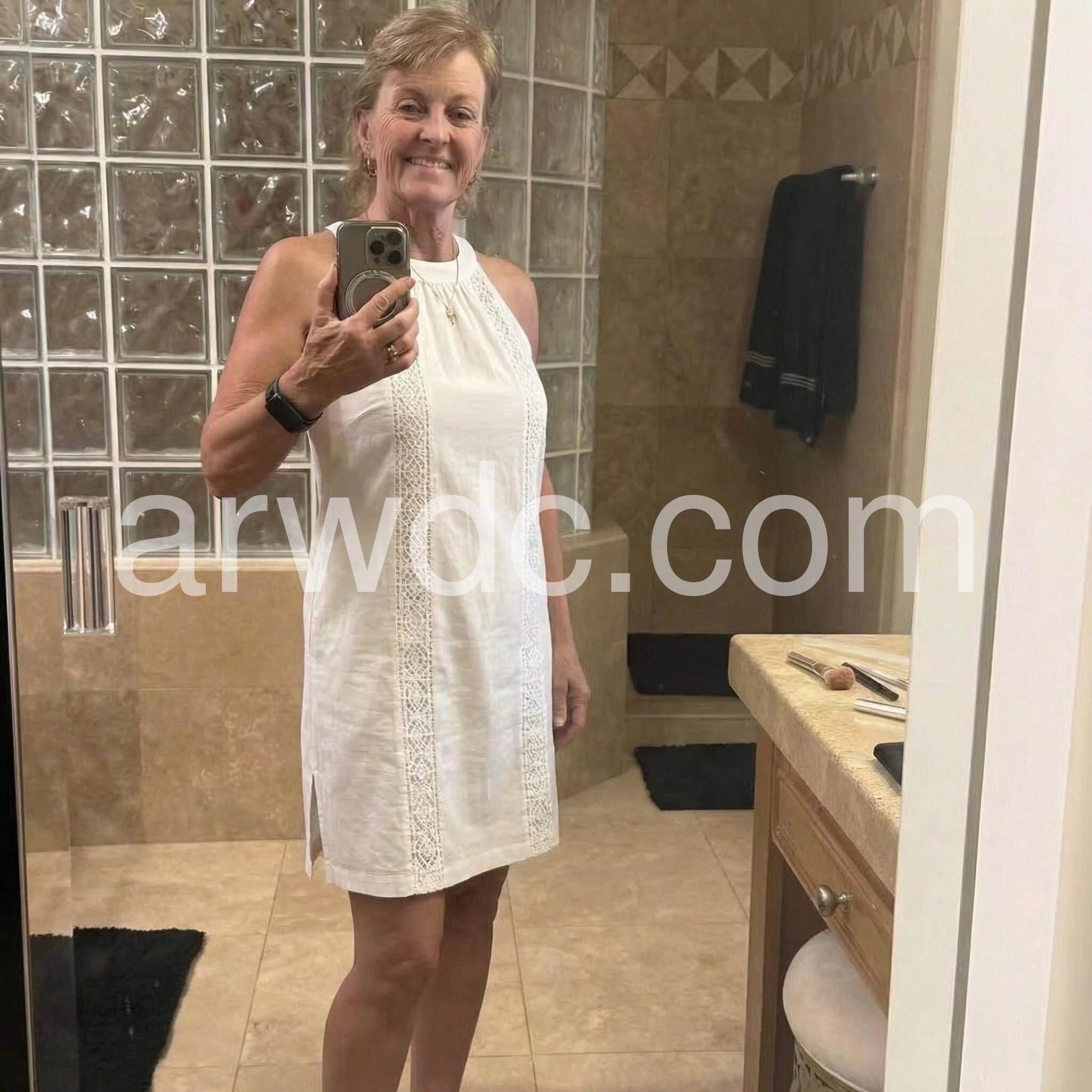 Stunning white dress! The crochet and lace detailing down the front elongates the body. I received so many compliments when I wore this to a summer brunch.