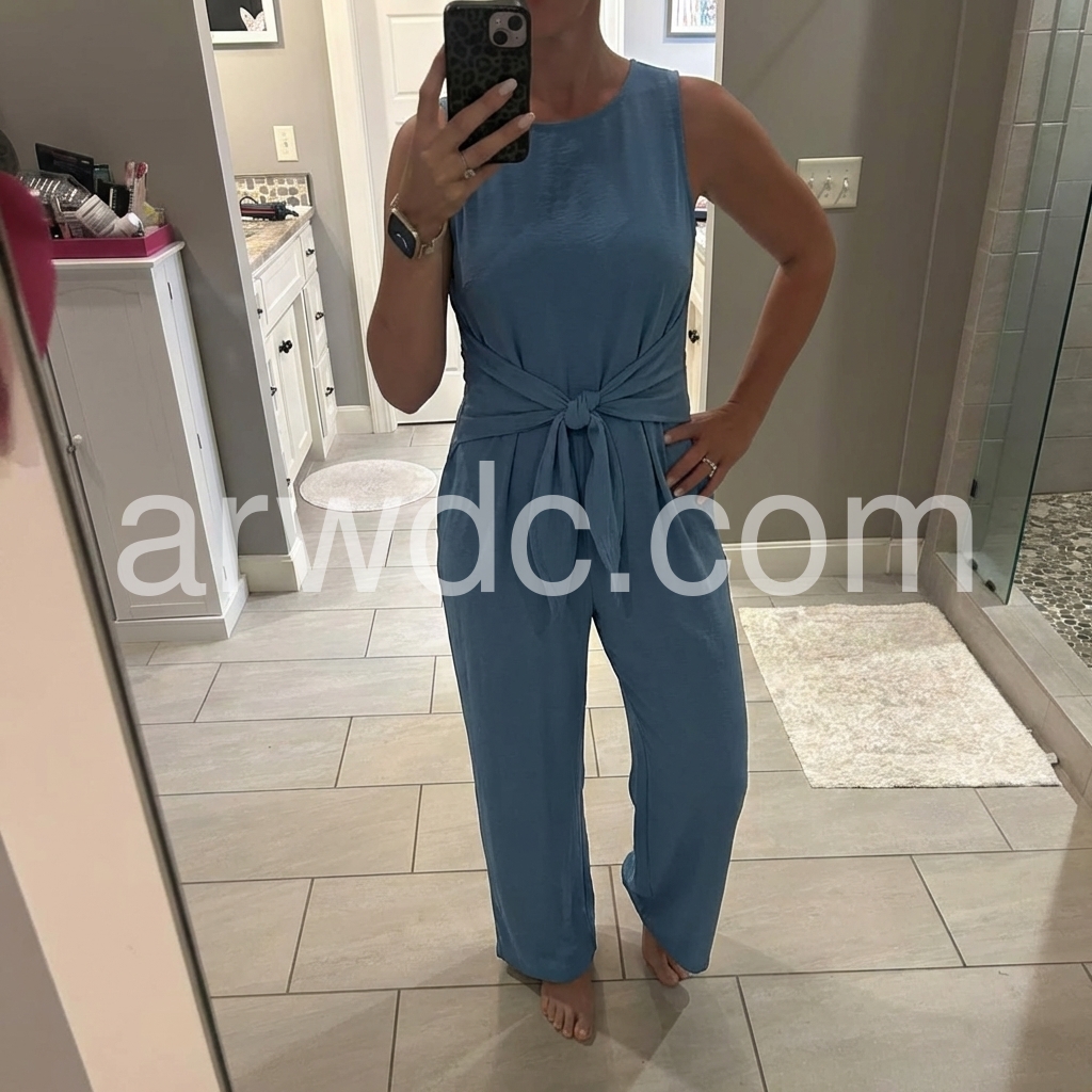 I’m 5’4”; 140lbs and I have never found a jumpsuit to fit “just” right. This one fits pretty good, though. It’s comfortable and is the perfect length with shoes on! It does not draw too much attention to the midsection, which is a plus!
