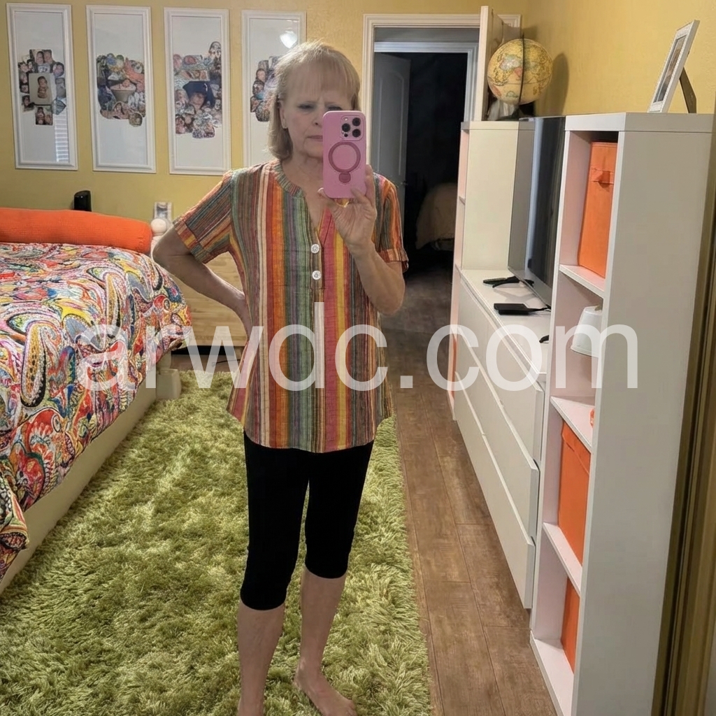 I absolutely love the colors on this top! The vertical stripes are very flattering and give it a fun, retro vibe. It fits true to size and is incredibly comfortable for everyday wear. Highly recommend!