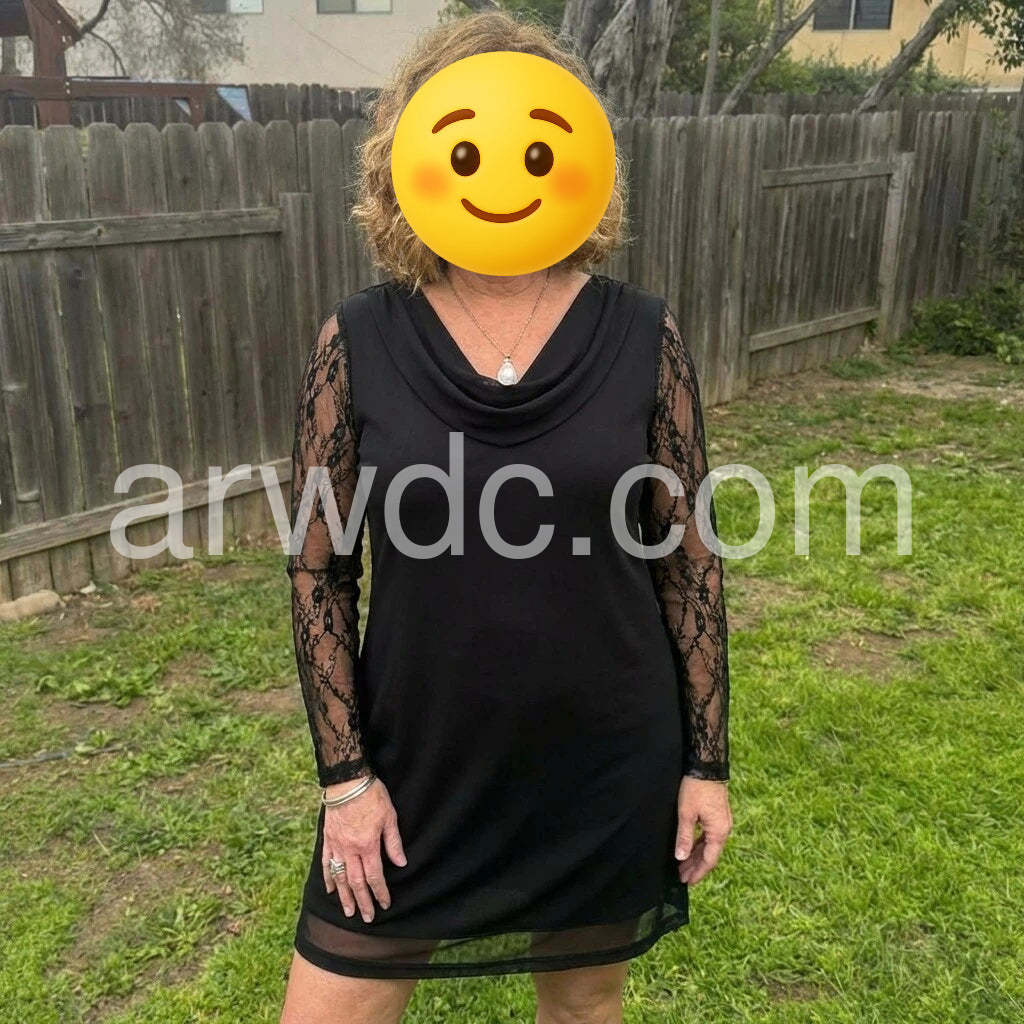 This dress is effortlessly chic and flattering. The lace sleeves add a delicate, feminine touch, while the solid black fabric keeps it versatile for both day and evening events. The length and drape are comfortable, and pairing with a gold clutch elevates the look nicely. Quality feels premium, and the fit is true to size. Fast shipping and friendly customer service completed a smooth shopping experience. Highly recommended for a polished, classic style.
