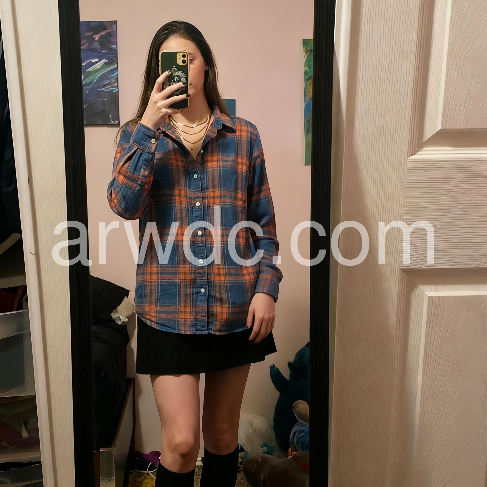 - Neckline: Collared